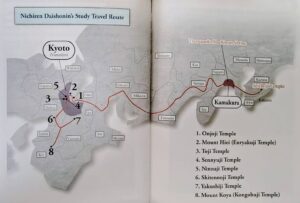 Seeking the many Buddhist scriptures and writings, he visite Kamakura, the center of politics and finance, and historic temples such as Enryakuji Temple on Mount Hiei, the center of Buddhism a that time.